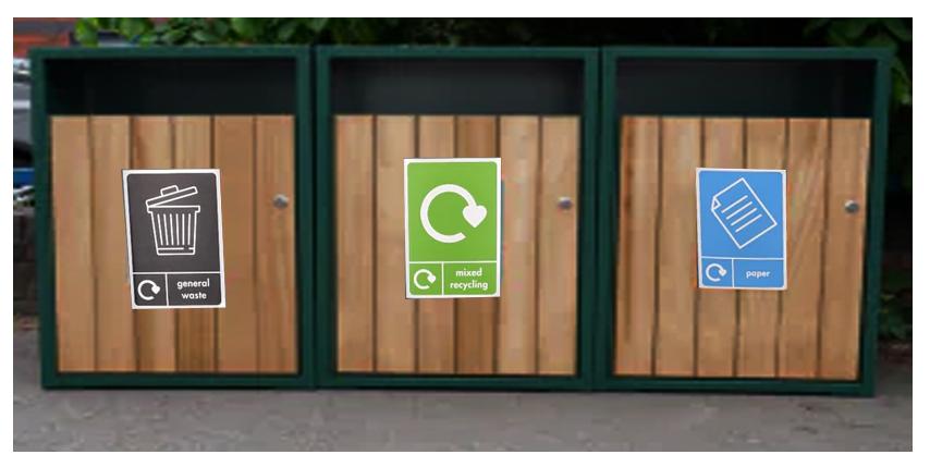 Construction of school recycling centers, with color coded bins for smart waste disposal in schools across the nation.
